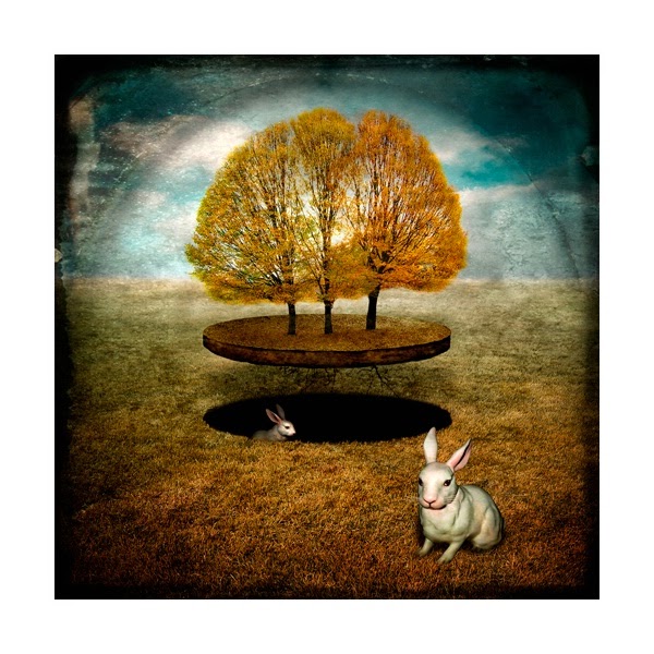 Maggie Taylor is truly a talented digital artist. The first thing that drew me to this photo was the completely normal idea, that was then incorporated with something completely abstract (floating trees). This picture really paints the scene of this setting in an area that seems to look like a prairie. It also insinuates the rabbit hole / home in which they live. It's hiding right "under the noses" of the trees. Cropping, masking, brushing, editing, were all techniques used to create this wonderful piece of art. It truly takes each and every technique in order to obtain something of this stature. The one aspect of this picture that really attracts me is the floating trees centered in the middle. They become the main figures in the mid-ground, focusing the viewers attention to there. There is a bit of Classical movement in her designs and they definitely center around a form of realism. All in all, Maggie Taylor is a very talented digital artist.